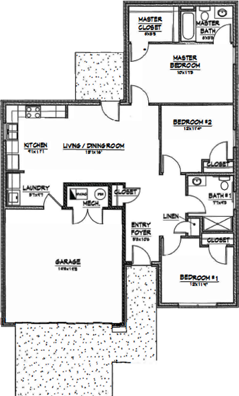 3 Bedroom / 2 Bath - 1,177 Sq. Ft.*